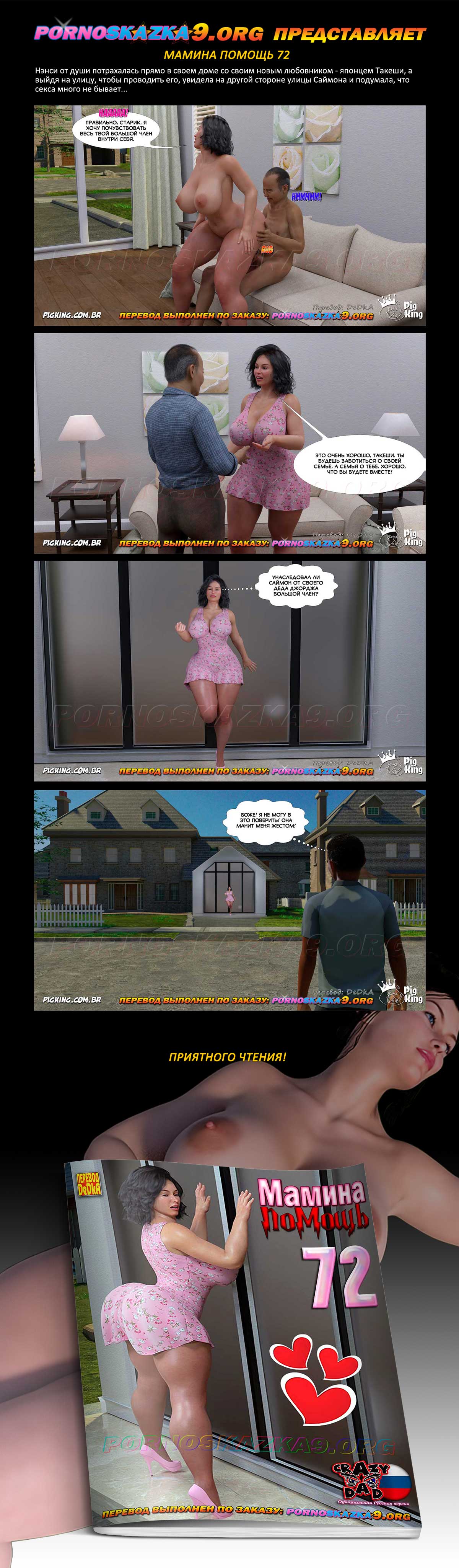 Порно комикс Мамина помощь. Часть 72. Нэнси от души потрахалась прямо в своем доме со своим новым любовником — японцем Такеши, а выйдя на улицу, чтобы проводить его, увидела на другой стороне улицы Саймона и подумала, что секса много не бывает…